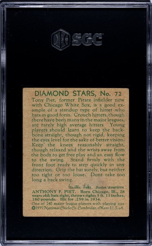 1934 Diamond Stars TONY PIET #72 1935 SGC 2.5
