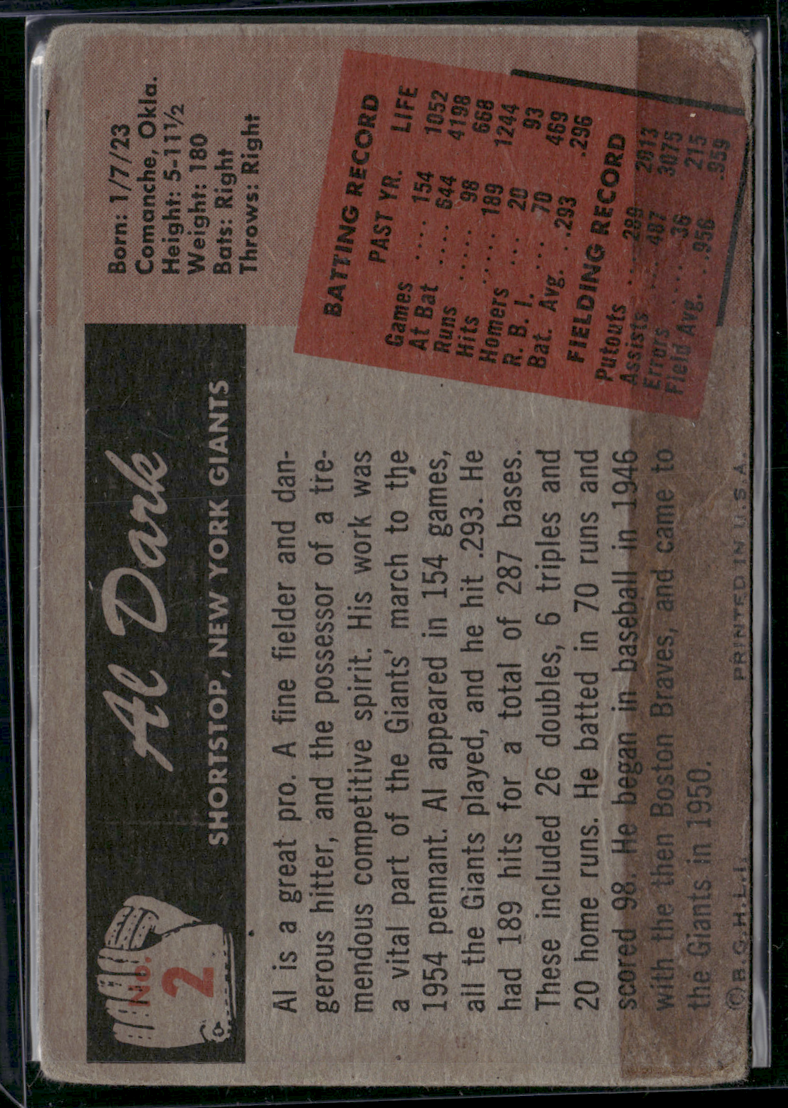 📌 1955 Bowman AL DARK #2 🔥 Get your hands on this rare and highly sought-after AL DARK card from 1955 Bowman! ✨ Card Details: Set: 1955 Bowman Card Number: #2 Player: AL DARK Condition: GOOD 📦 Shipping and Handling: ✅ Ships in a penny sleeve + top loader for maximum protection ✅Shipped within 24 hours of payment ✅Combined shipping available for multiple orders 💯 Why Buy From Us? ⭐ Trusted Seller with Fast and Secure Shipping ⭐All cards are handled with care and packaged securely ⭐Satisfaction Guaranteed — See Our Feedback! 👉 Check out our store for more rookie cards, autographs, and inserts! 👉Follow us for new listings and special offers! Thank you for shopping at Yacono Sports Collectibles!🔥 Listed With Mascot.
