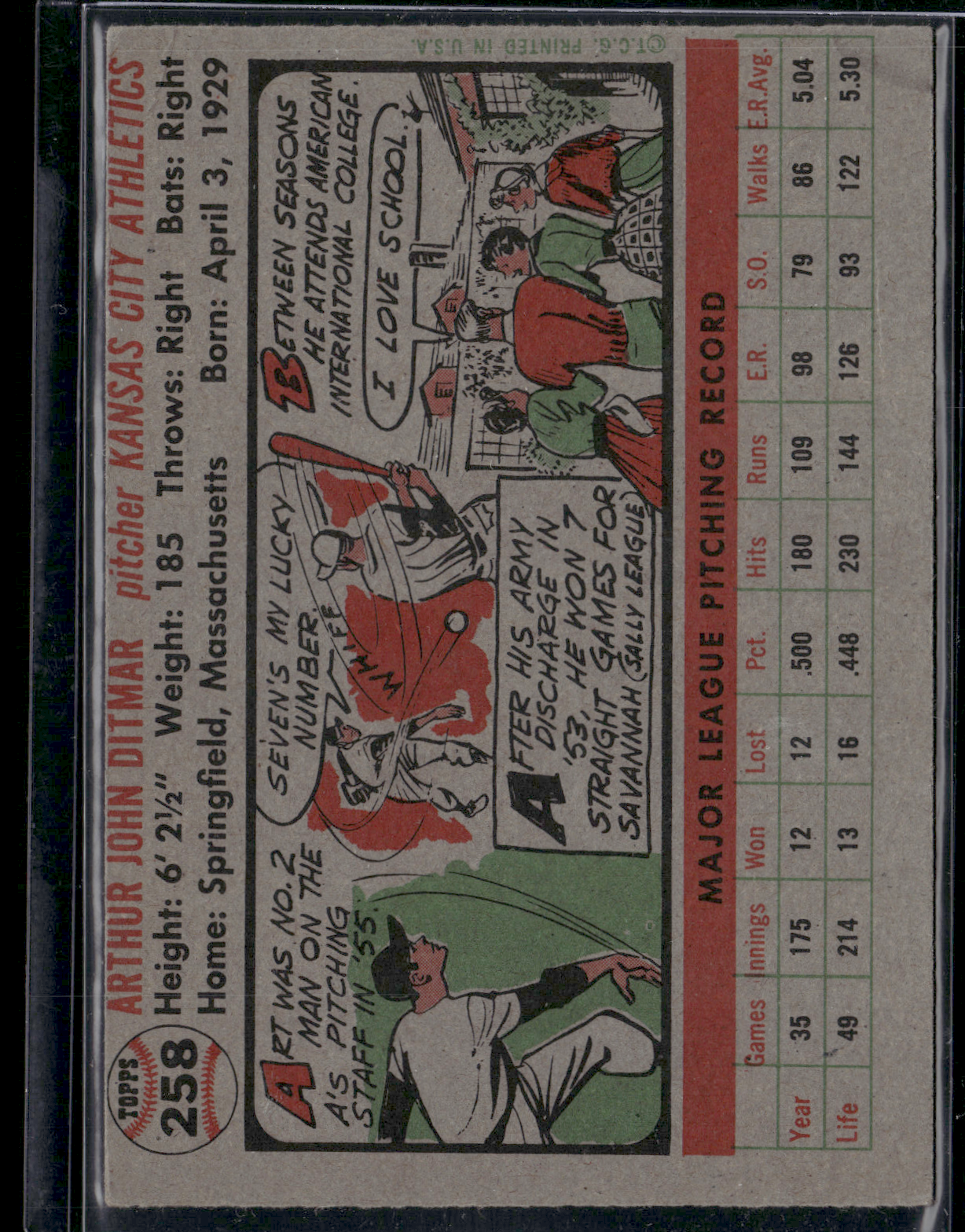 1956 Topps ART DITMAR #258 Light Wrinkle on Back