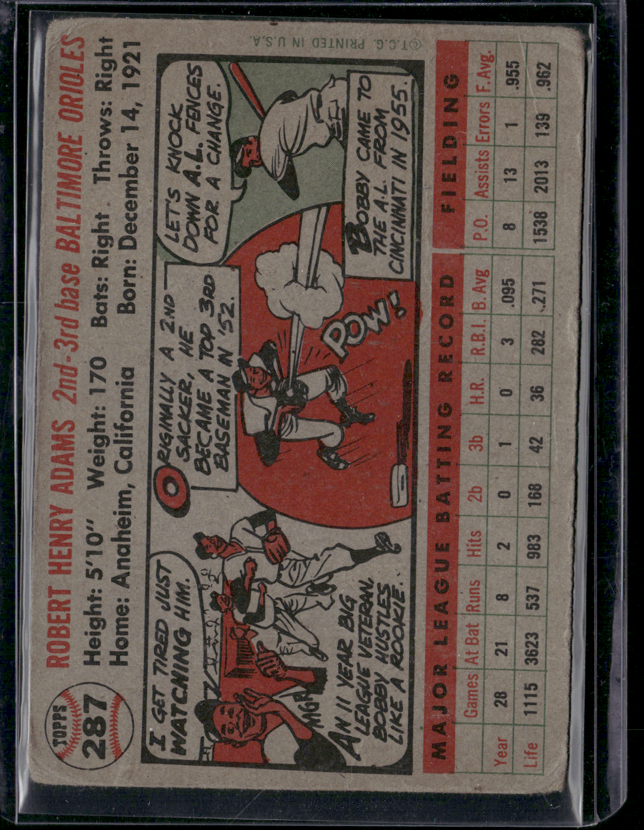 1956 Topps BOBBY ADAMS #287 Wrinkling