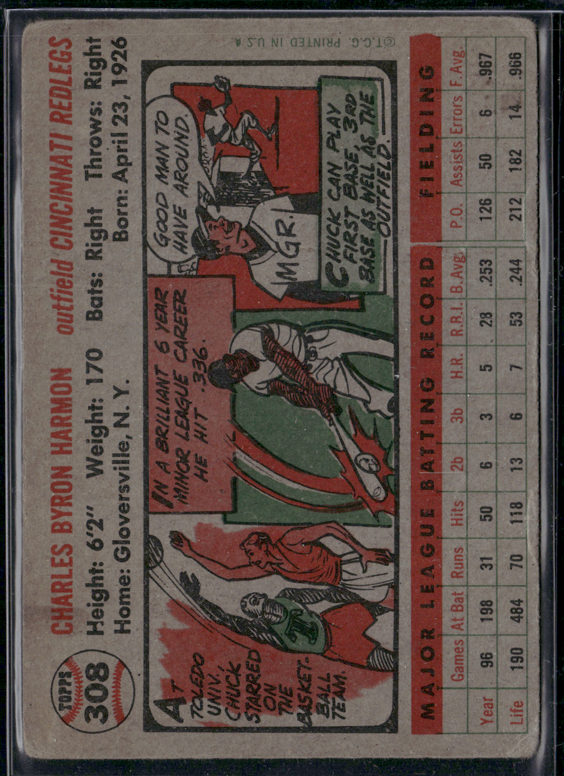 1956 Topps CHUCK HARMON #308 Wrinkling