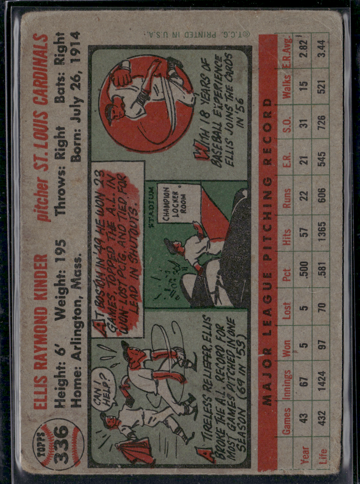 1956 Topps ELLIS KINDER #336 Writing on Front
