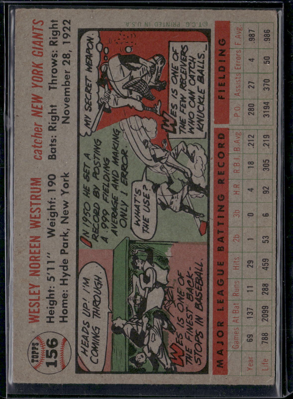 1956 Topps WES WESTRUM #156 Light wrinkling on back