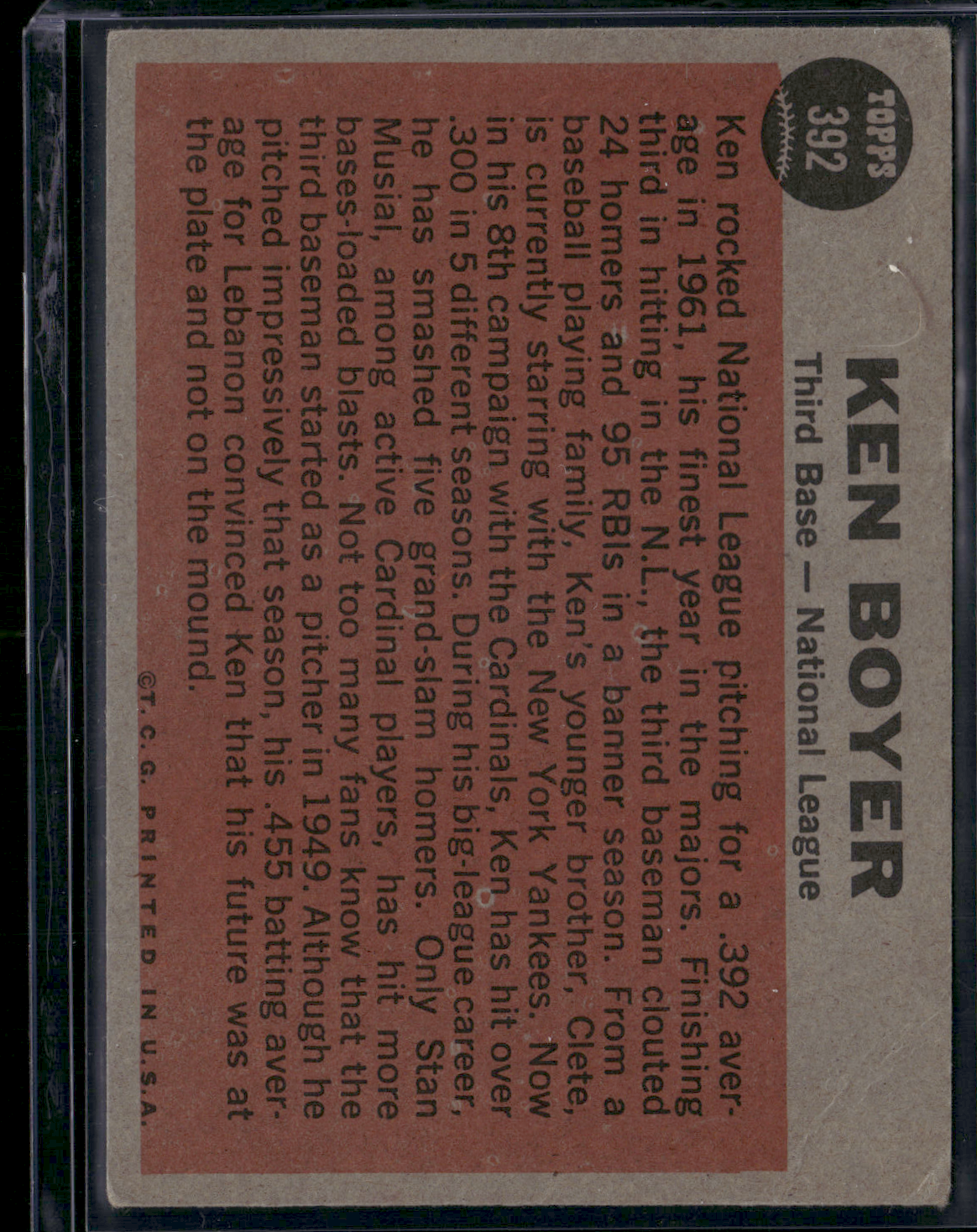 1962 Topps KEN BOYER #392 NL ALL STAR