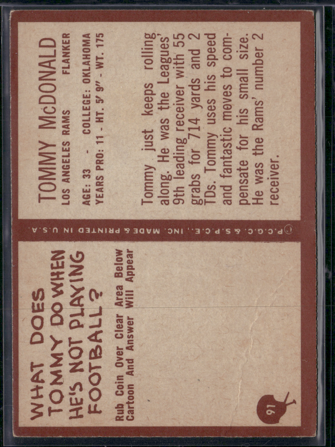 📌 1967 Philadelphia TOMMY MCDONALD #91 🔥 Get your hands on this rare and highly sought-after TOMMY MCDONALD card from 1967 Philadelphia! ✨ Card Details: Set: 1967 Philadelphia Card Number: #91 Player: TOMMY MCDONALD Condition: RAW 📦 Shipping and Handling: ✅ Ships in a penny sleeve + top loader for maximum protection ✅Shipped within 24 hours of payment ✅Combined shipping available for multiple orders 💯 Why Buy From Us? ⭐ Trusted Seller with Fast and Secure Shipping ⭐All cards are handled with care and packaged securely ⭐Satisfaction Guaranteed — See Our Feedback! 👉 Check out our store for more rookie cards, autographs, and inserts! 👉Follow us for new listings and special offers! Thank you for shopping at Yacono Sports Collectibles!🔥 Listed With Mascot.