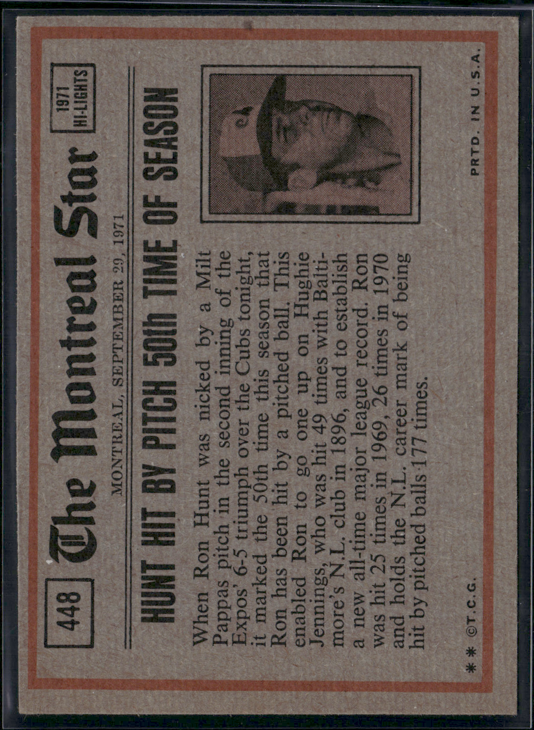 1972 Topps WILLIE STARGELL #448 IN ACTION