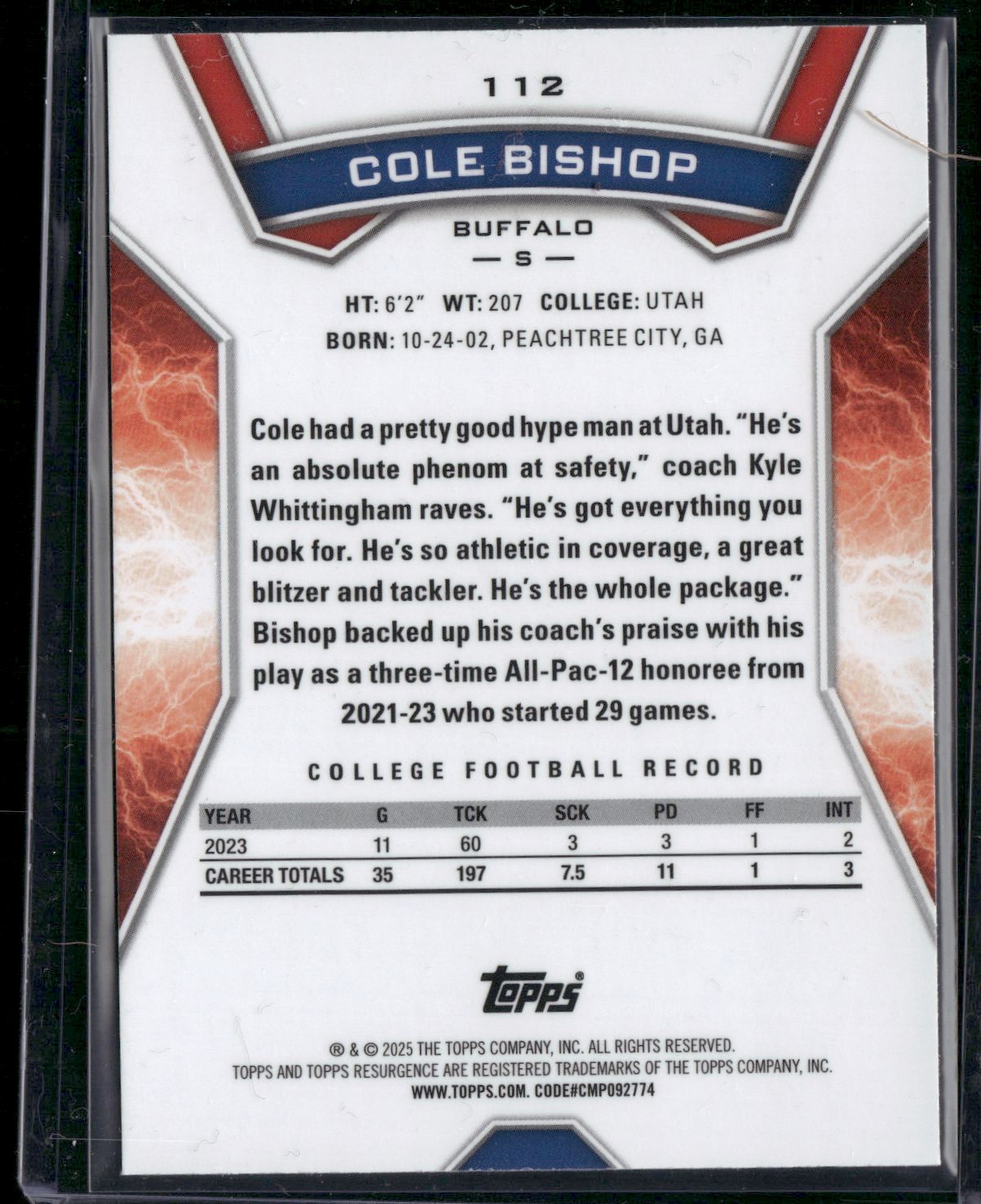 2024 Topps Resurgence COLE BISHOP #112 Rookie Card RC