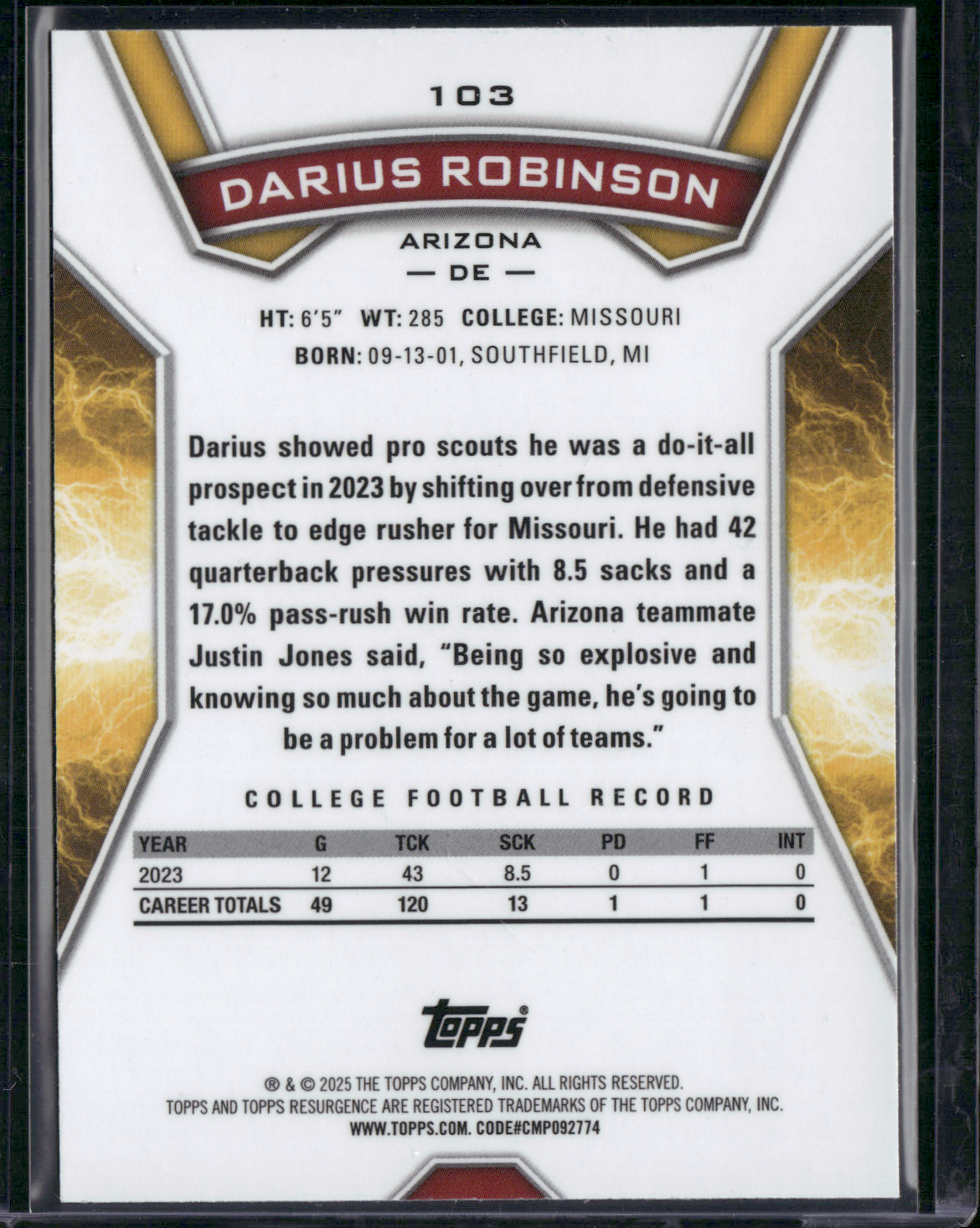 2024 Topps Resurgence DARIUS ROBINSON #103 MOLTEN LAVA FOILBOARD Rookie Card RC