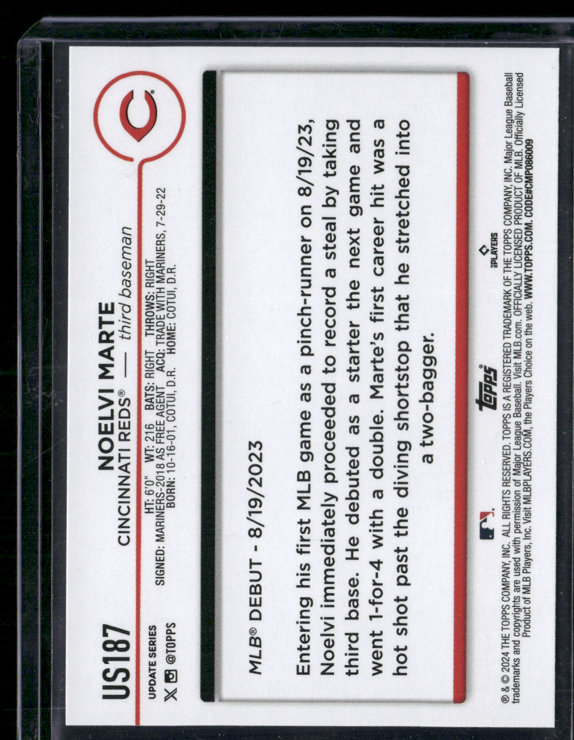 📌 2024 Topps NOELVI MARTE Rookie Card RC #US187 🔥 Get your hands on this rare and highly sought-after NOELVI MARTE card from 2024 Topps! ✨ Card Details: Set: 2024 Topps Update Card Number: #US187 Player: NOELVI MARTE Condition: NM or Better 📦 Shipping and Handling: ✅ Ships in a penny sleeve + top loader for maximum protection ✅Shipped within 24 hours of payment ✅Combined shipping available for multiple orders 💯 Why Buy From Us? ⭐ Trusted Seller with Fast and Secure Shipping ⭐All cards are handled with care and packaged securely ⭐Satisfaction Guaranteed — See Our Feedback! 👉 Check out our store for more rookie cards, autographs, and inserts! 👉Follow us for new listings and special offers! Thank you for shopping at Yacono Sports Collectibles!🔥 Listed With Mascot.