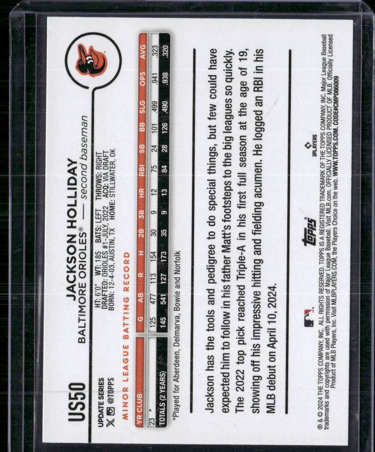2024 Update JACKSON HOLLIDAY #US50 Rookie