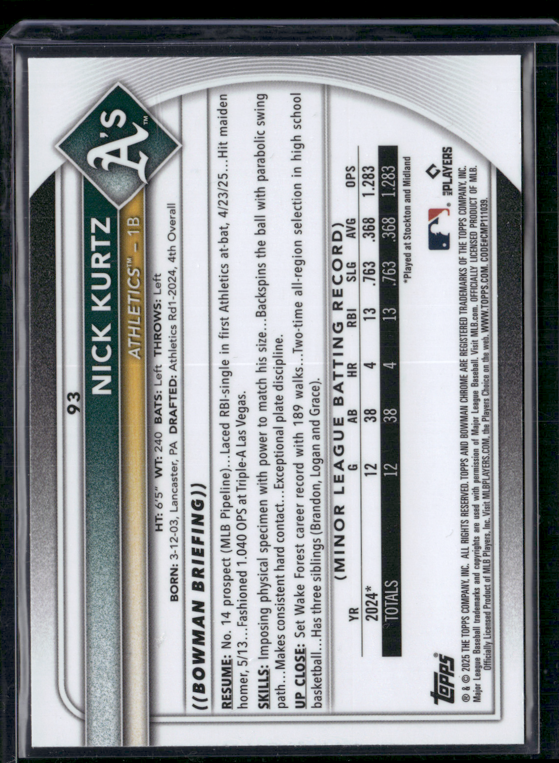 2025 Bowman Chrome NICK KURTZ #93 Mega Rookie Card RC