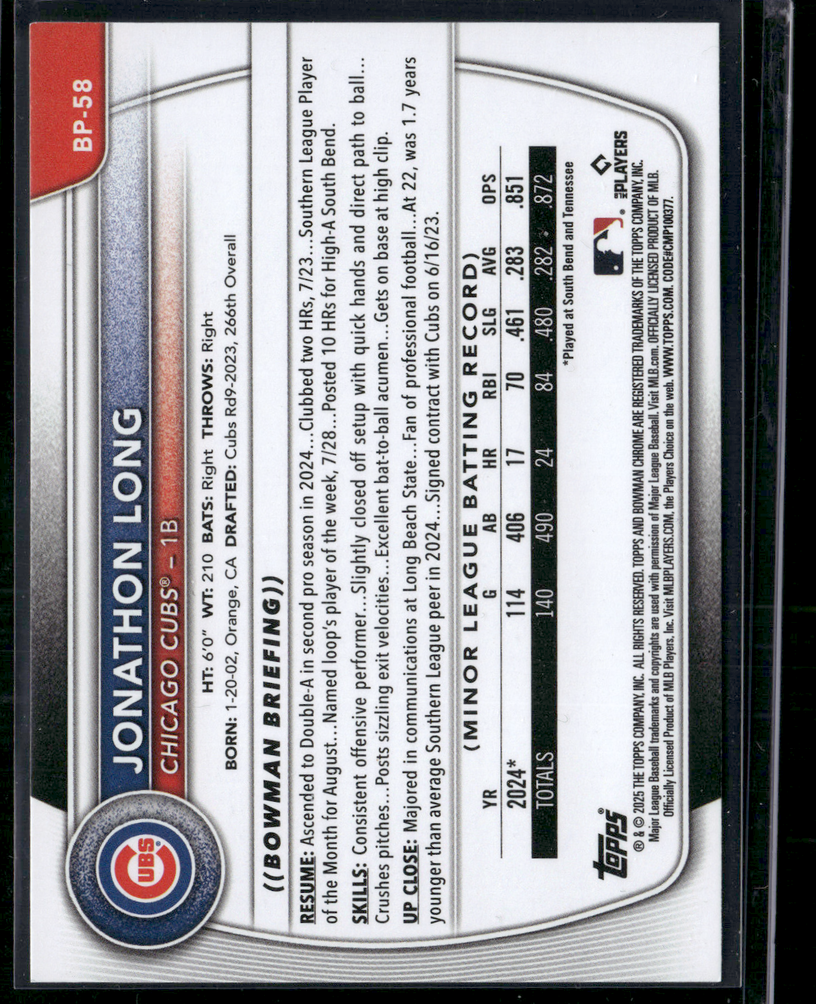 2025 Bowman JONATHON LONG #BP-58 1st Bowman