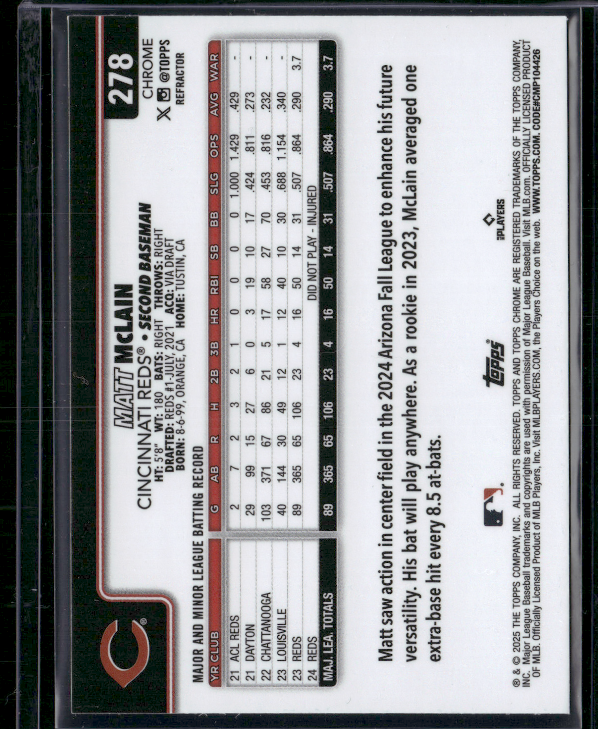2025 Topps Chrome MATT MCLAIN #278 Rainbow Refractor