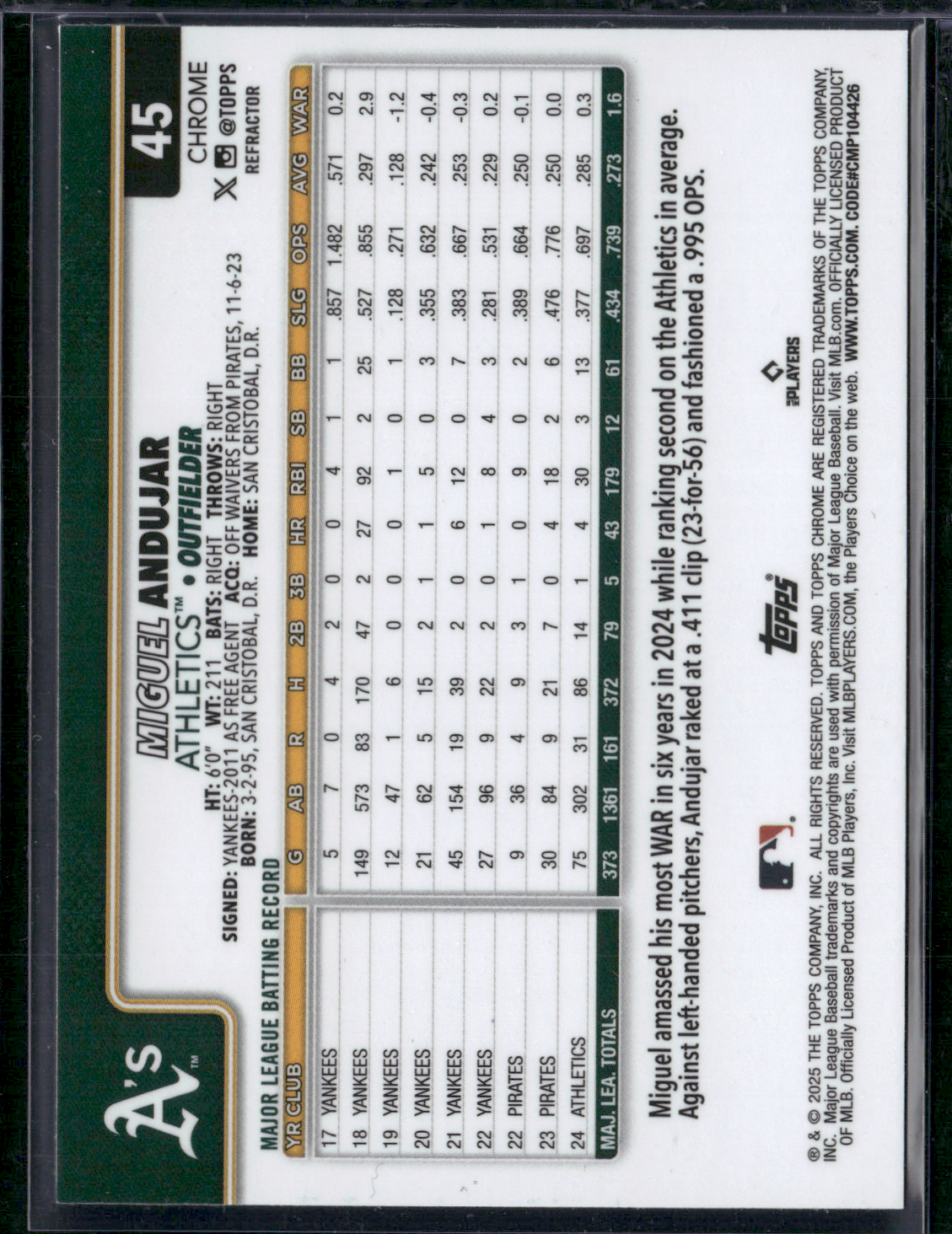 2025 Topps Chrome MIGUEL ANUJAR #45 Rainbow Refractor