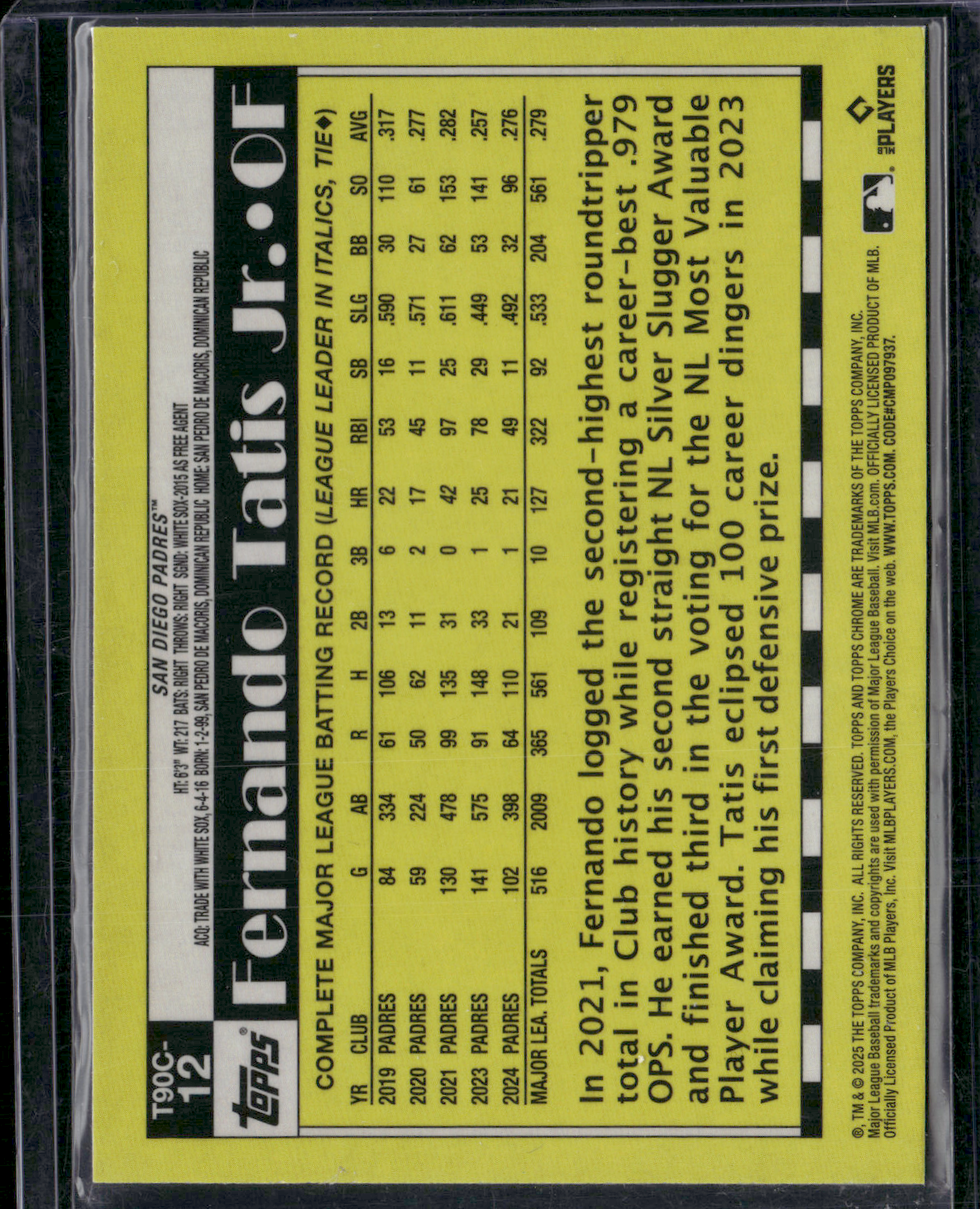 2025 Topps Series 1 FERNANDO TATIS JR #T90C-12 Mojo Refractor