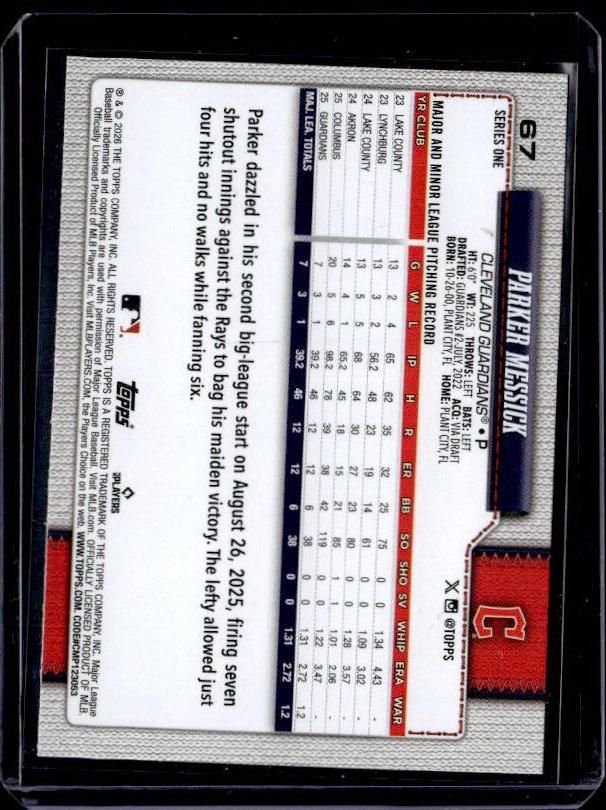 2026 Topps Series 1 PARKER MESSICK #67 Rookie RC